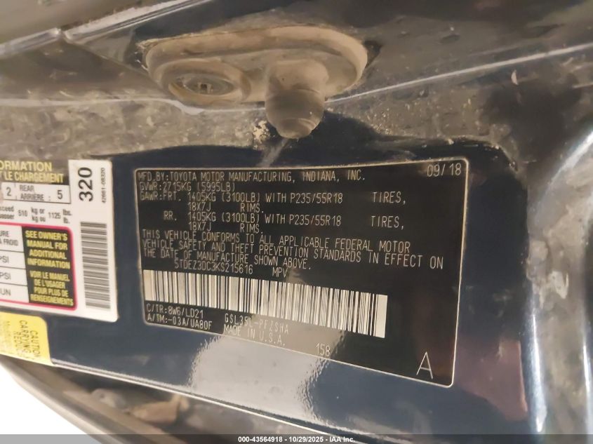 2019 TOYOTA SIENNA 2019 року Бензин, 3.5, Полный привод, vin - 5TDEZ3DC3KS215616 из США