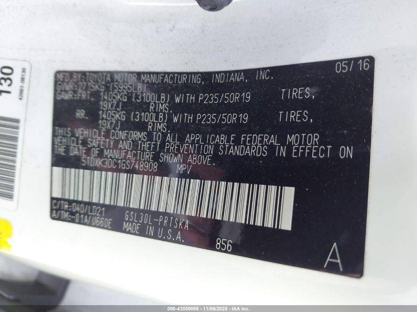 2016 TOYOTA SIENNA