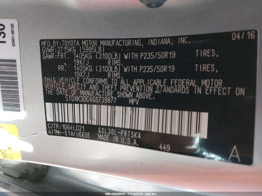 2016 TOYOTA SIENNA 2016 року Бензин, 3.5, Передний привод, vin - 5TDXK3DC4GS739877 из США