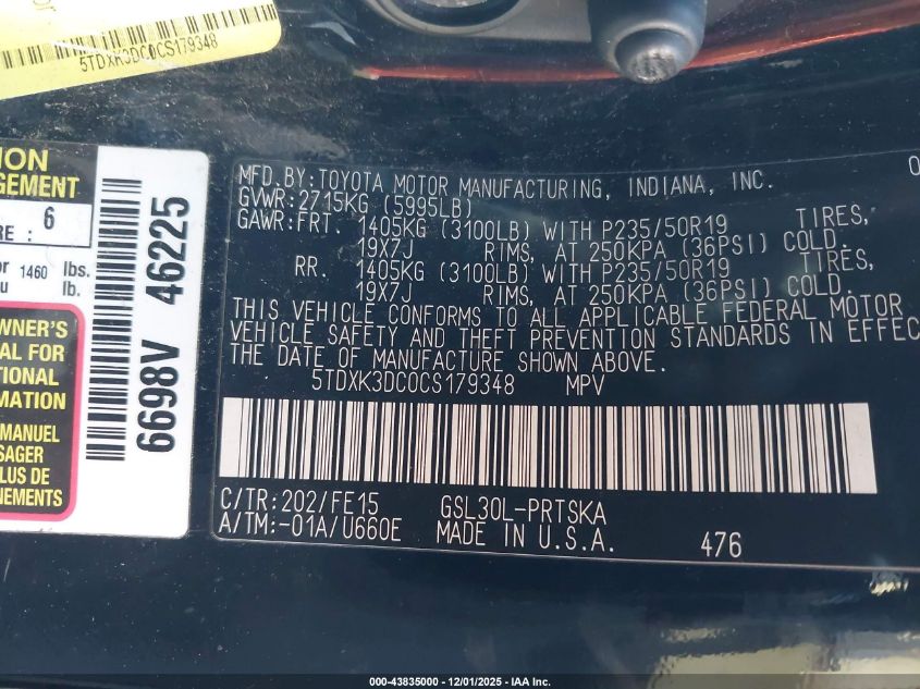 2012 TOYOTA SIENNA XLE