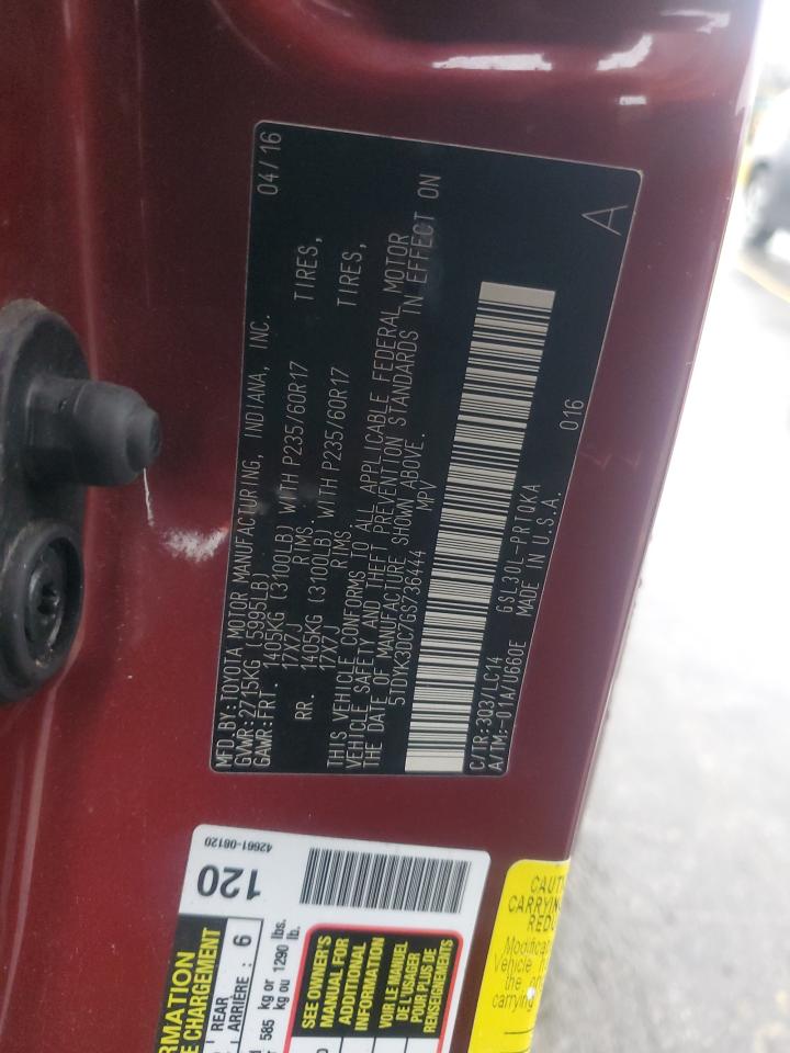 2016 TOYOTA SIENNA 2016 року Бензин, 3.5, , vin - 5TDYK3DC7GS736444 из США
