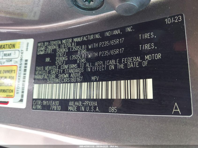 2024 TOYOTA SIENNA 2024 року Гибрид, 2.5, Передний привод, vin - 5TDYRKECXRS180167 из США