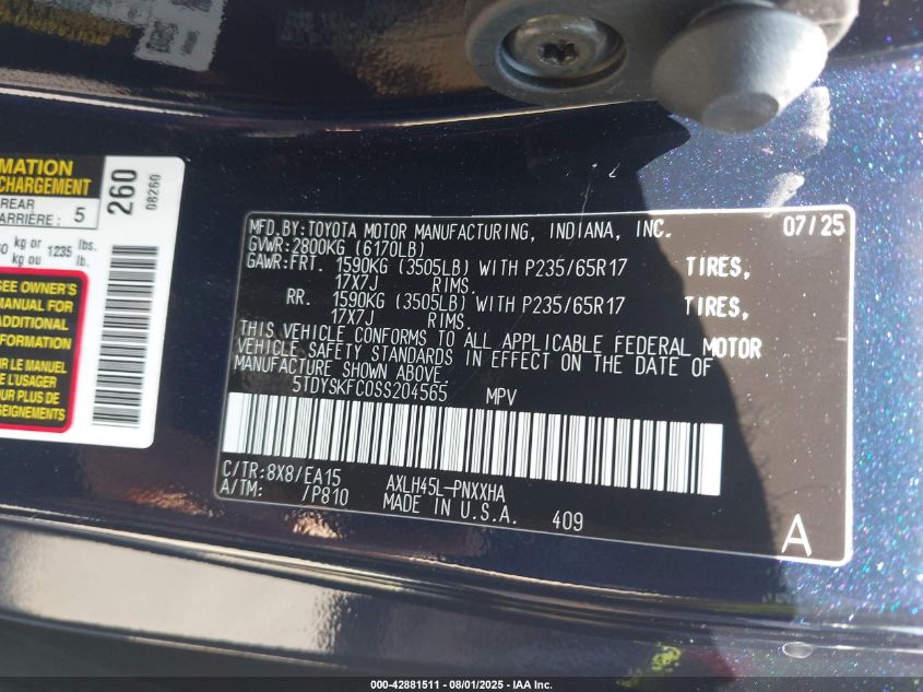 Цвет СинийЦилиндры 4Привод Полный приводVIN 5TDYSKFC0SS204565Состояние СтационарноПовреждения ЗадняяДата аукциона 2025-12-16