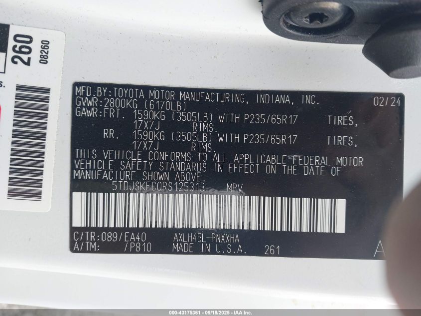 2024 TOYOTA SIENNA 2024 року Гибрид, 2.5, Полный привод, vin - 5TDJSKFC0RS125313 из США