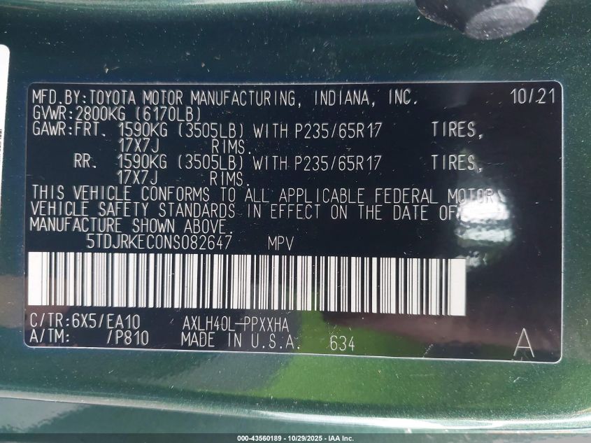 Цвет ЗеленыйЦилиндры 4Привод Передний приводVIN 5TDJRKEC0NS082647Состояние СтационарноПовреждения Передняя или задняя AutoRIA