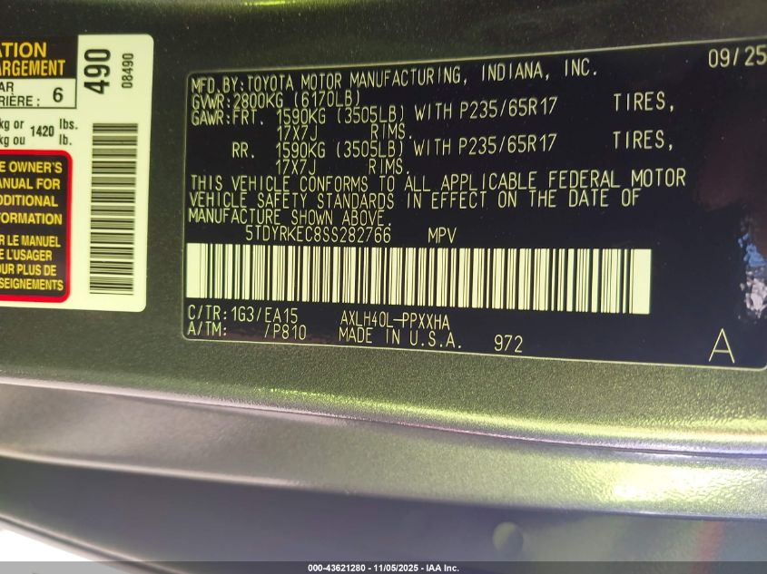 2025 TOYOTA SIENNA 2025 року Гибрид, 2.5, Передний привод, vin - 5TDYRKEC8SS282766 из США