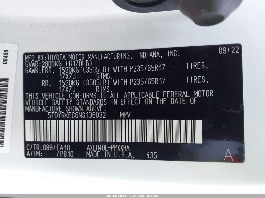 2022 TOYOTA SIENNA 2022 року Гибрид, 2.5, Передний привод, vin - 5TDYRKEC6NS136032 из США