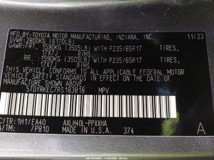 2024 TOYOTA SIENNA 2024 року Гибрид, 2.5, Передний привод, vin - 5TDYRKEC7RS183818 из США