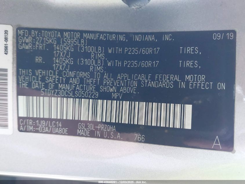 2020 TOYOTA SIENNA 2020 року Бензин, 3.5, Передний привод, vin - 5TDYZ3DC5LS050229 из США