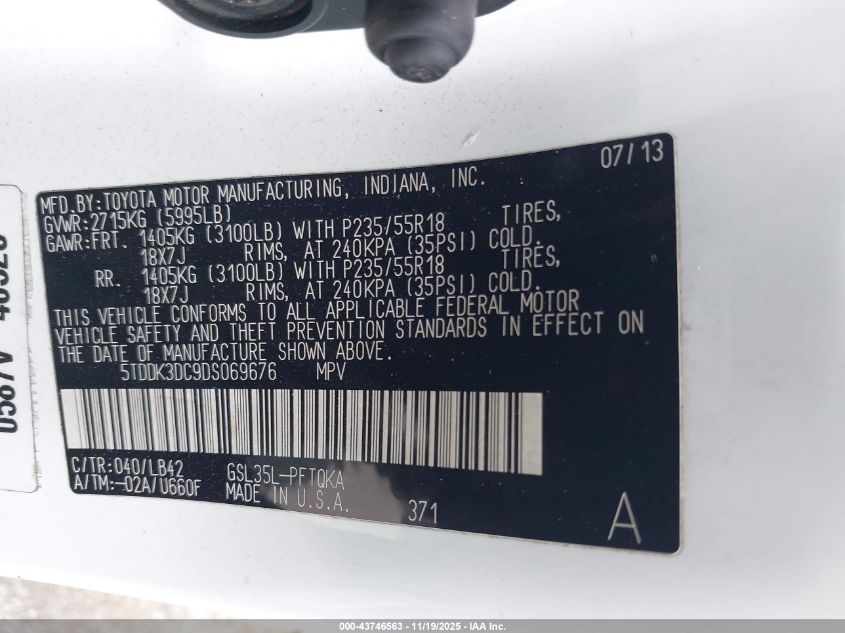 2013 TOYOTA SIENNA 2013 року Бензин, 3.5, Полный привод, vin - 5TDDK3DC9DS069676 из США