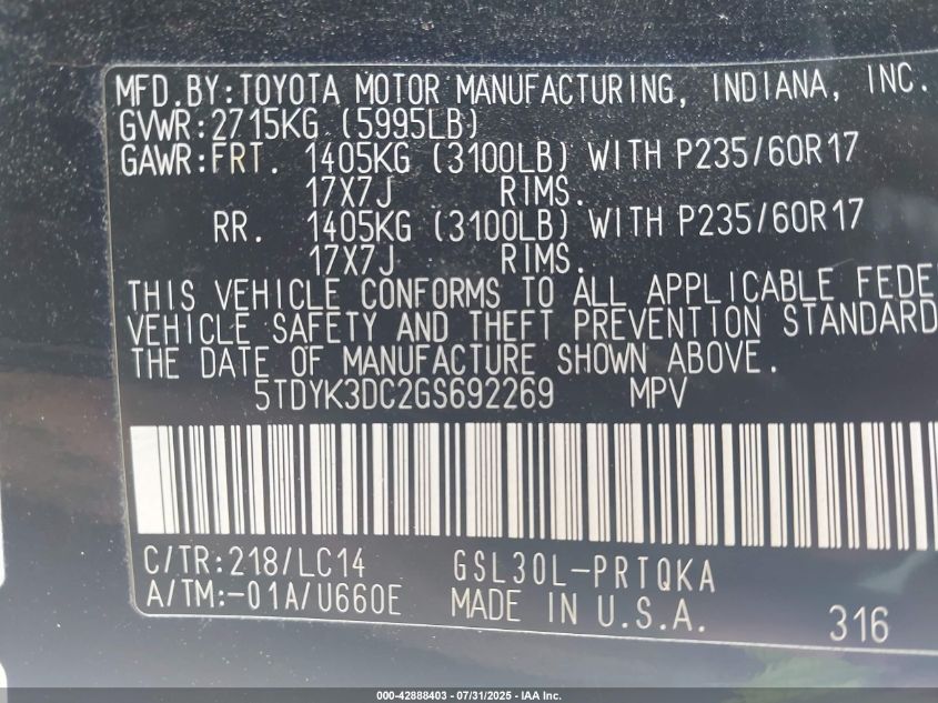Цвет ЧерныйЦилиндры 6Привод Передний приводVIN 5TDYK3DC2GS692269Состояние Заводится и едет (проверено)Повреждения ЗадняяДата аукциона 2025-12-10 AutoRIA