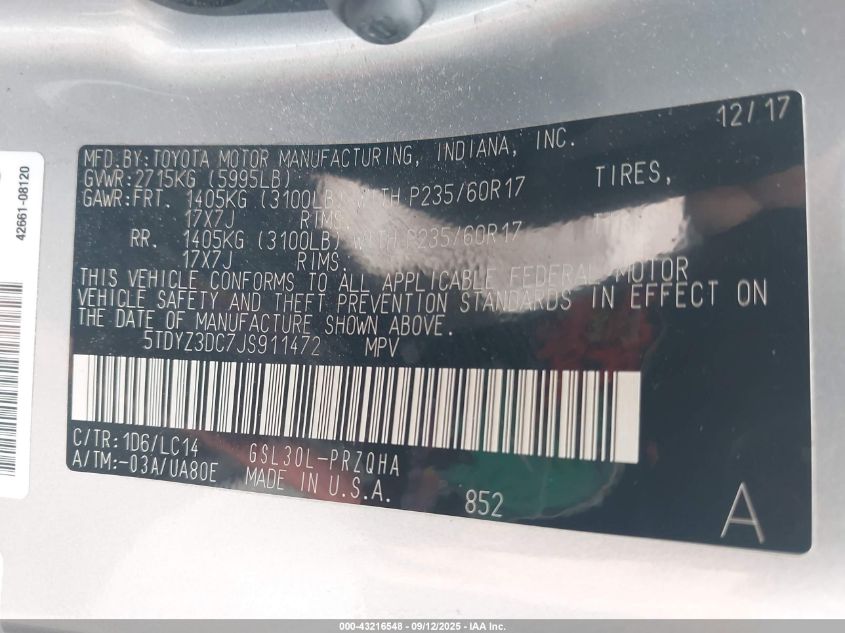 2018 TOYOTA SIENNA 2018 року Бензин, 3.5, Передний привод, vin - 5TDYZ3DC7JS911472 из США