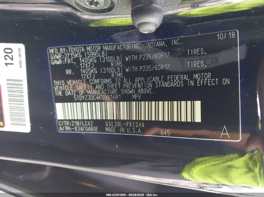 Цвет ЧерныйЦилиндры 6Привод Передний приводVIN 5TDYZ3DC4KS981481Состояние Заводится и едет (проверено)Повреждения Правая сторонаДата аукциона 2025-12-10 AutoRIA