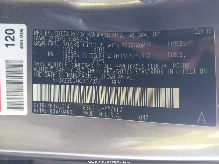 Цвет СерыйЦилиндры 6Привод Передний приводVIN 5TDYZ3DC4KS007371Состояние Заводится и едет (проверено)Повреждения Передняя или задняяДата аукциона 2025-12-09 AutoRIA