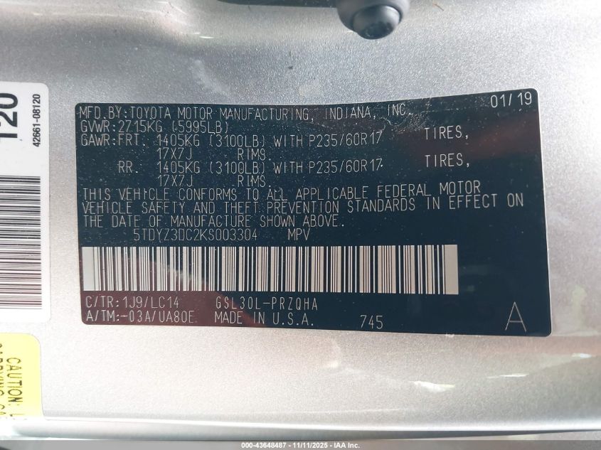 2019 TOYOTA SIENNA