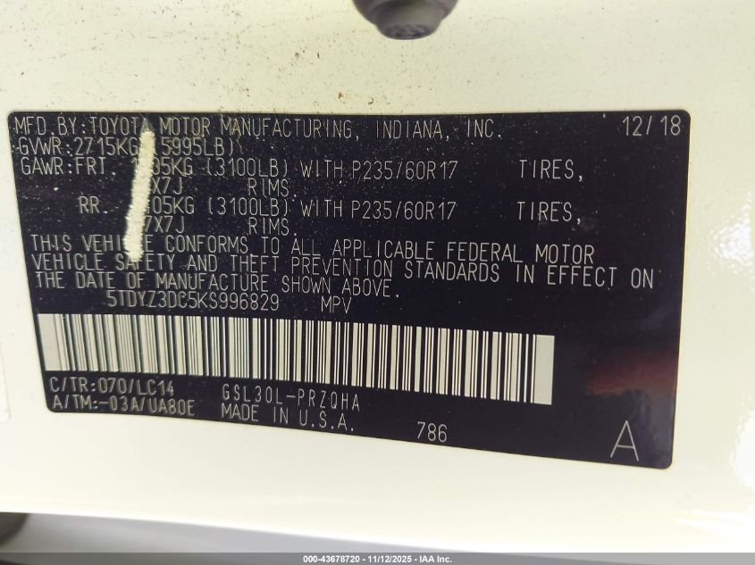 2019 TOYOTA SIENNA 2019 року Бензин, 3.5, Передний привод, vin - 5TDYZ3DC5KS996829 из США