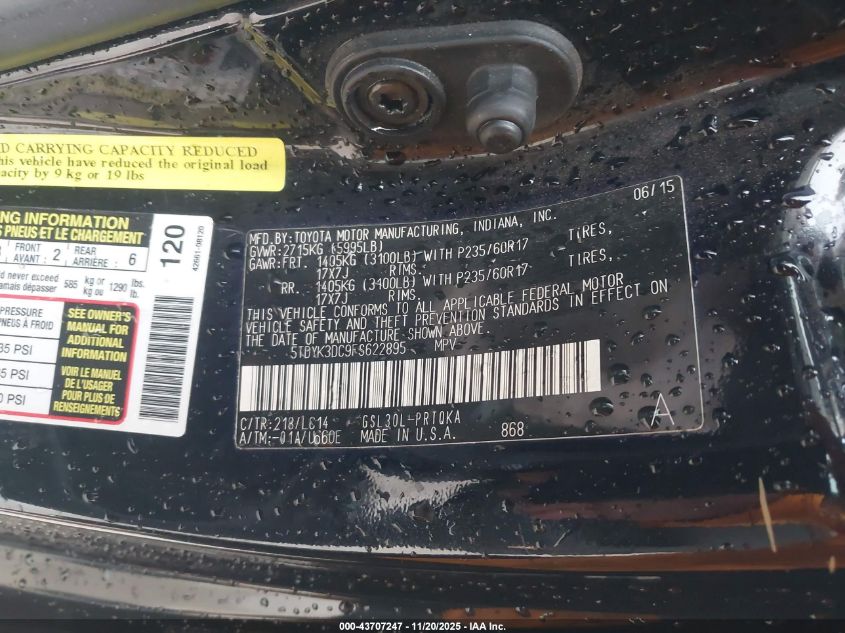 2015 TOYOTA SIENNA 2015 року Бензин, 3.5, Передний привод, vin - 5TDYK3DC9FS622895 из США