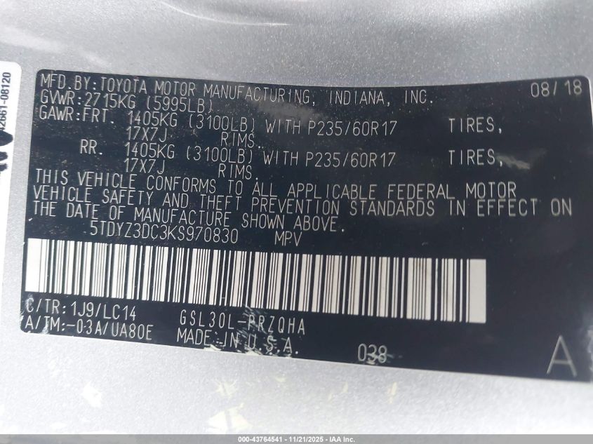 2019 TOYOTA SIENNA 2019 року Бензин, 3.5, Передний привод, vin - 5TDYZ3DC3KS970830 из США