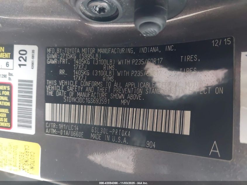 Цвет СерыйЦилиндры 6Привод Передний приводVIN 5TDYK3DC1GS693591Состояние Заводится и едет (проверено)Повреждения Передняя или задняяДата аукциона 2025-12-16 AutoRIA