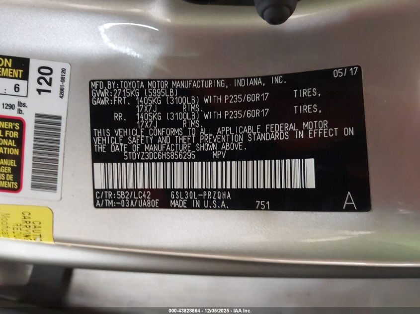 2017 TOYOTA SIENNA 2017 року Бензин, 3.5, Передний привод, vin - 5TDYZ3DC6HS856295 из США