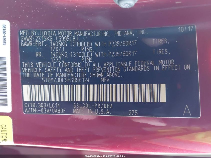 2017 TOYOTA SIENNA 2017 року Бензин, 3.5, Передний привод, vin - 5TDYZ3DC9HS895124 из США