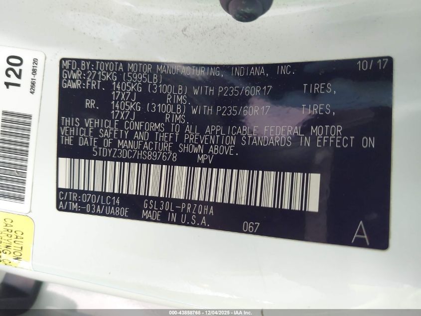 2017 TOYOTA SIENNA 2017 року Бензин, 3.5, Передний привод, vin - 5TDYZ3DC7HS897678 из США