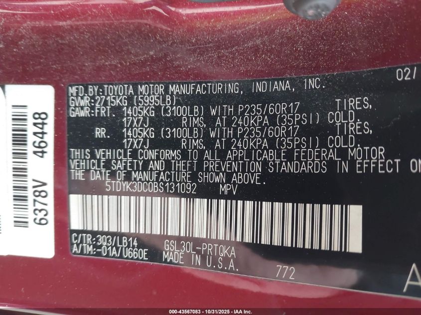 Цвет БургундияЦилиндры 6Привод Передний приводVIN 5TDYK3DC0BS131092Состояние СтационарноПовреждения Передняя или задняяДата аукциона 2025-12-10 AutoRIA