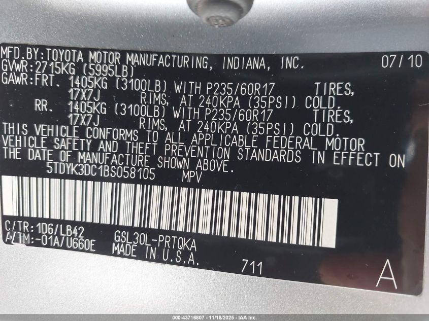 2011 TOYOTA SIENNA