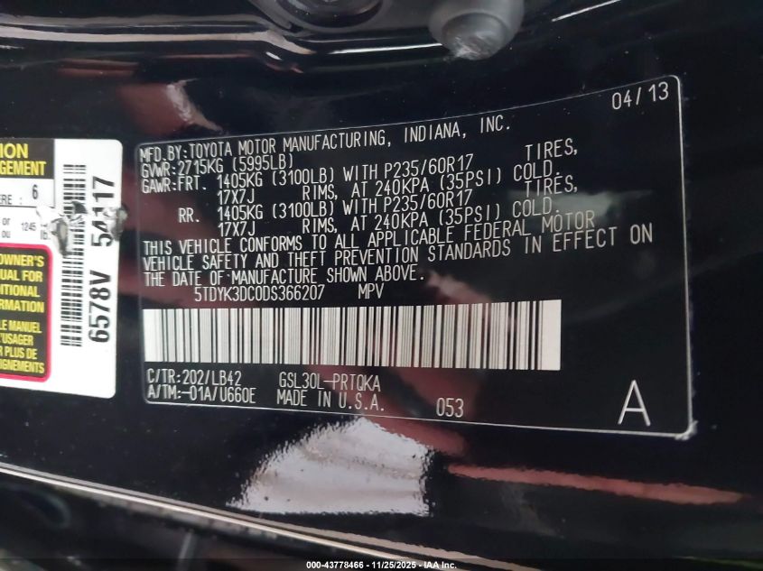 Цвет ЧерныйЦилиндры 6Привод Передний приводVIN 5TDYK3DC0DS366207Состояние Заводится и едет (проверено)Повреждения Передняя или задняя AutoRIA