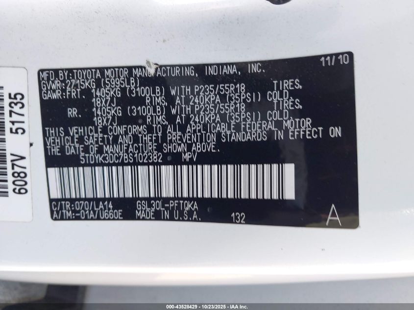 2011 TOYOTA SIENNA