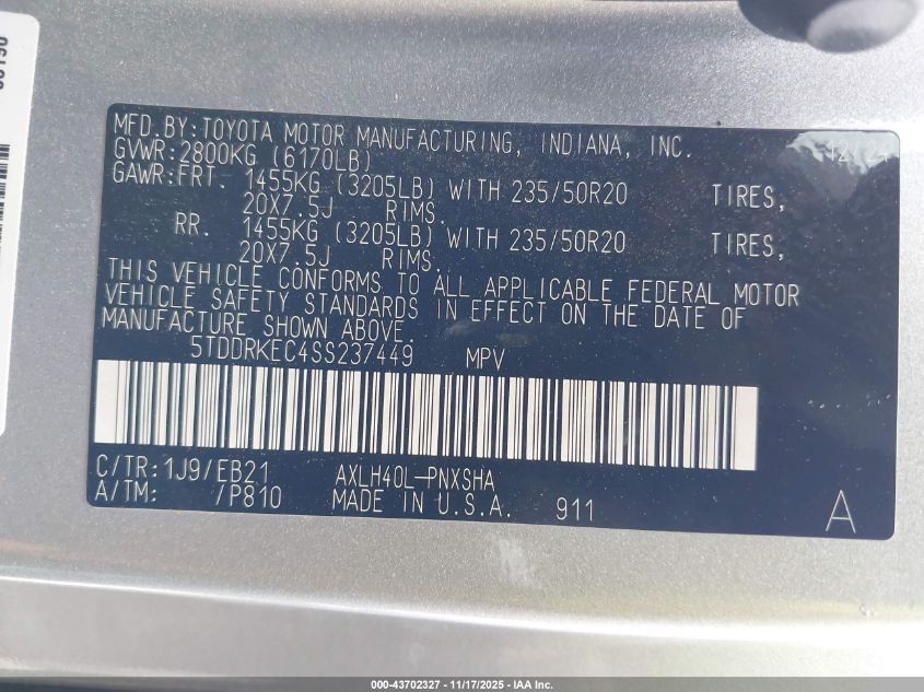 Цвет СеребряныйЦилиндры 4Привод Передний приводVIN 5TDDRKEC4SS237449Состояние Заводится и едет (проверено)Повреждения Передняя или задняя