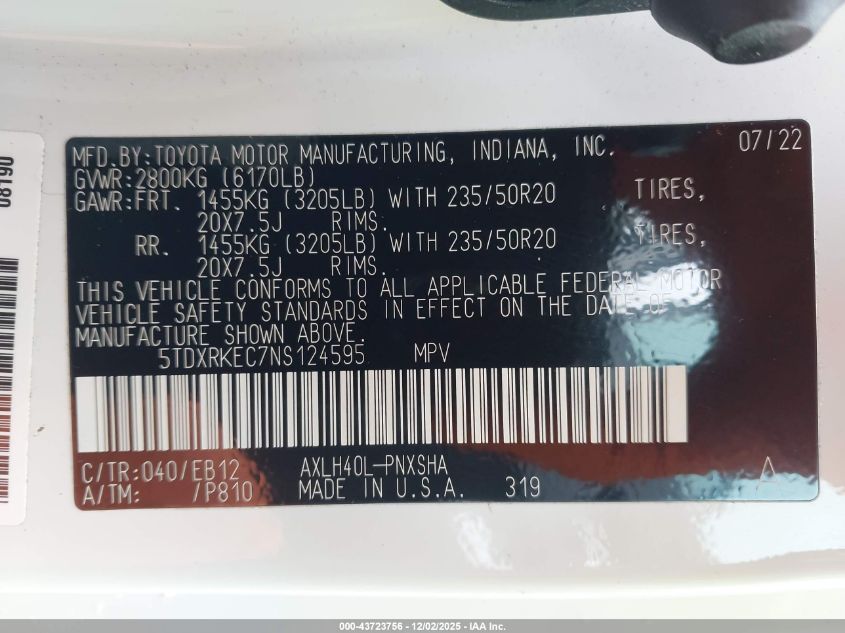Цвет БелыйЦилиндры 4Привод Передний приводVIN 5TDXRKEC7NS124595Состояние Заводится и едет (проверено)Повреждения Передняя или задняя AutoRIA