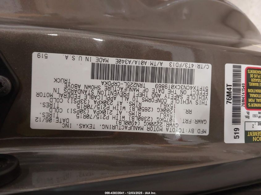 2012 TOYOTA TACOMA 2012 року Бензин, 2.7, , vin - 5TFTX4CN3CX019869 из США