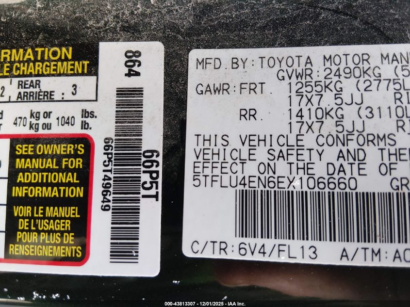 2014 TOYOTA TACOMA 2014 року Бензин, 4.0, Полный привод, vin - 5TFLU4EN6EX106660 из США