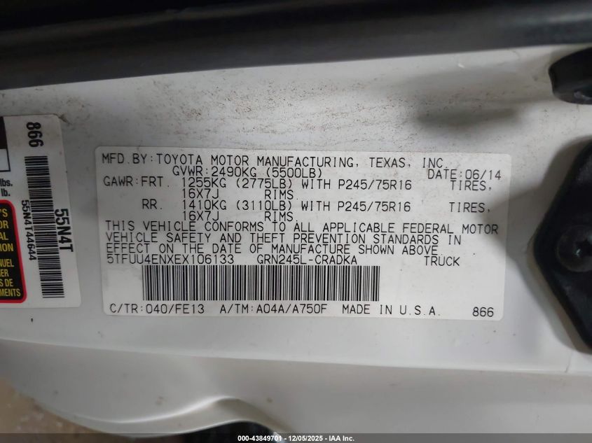 2014 TOYOTA TACOMA 2014 року Бензин, 4.0, Полный привод, vin - 5TFUU4ENXEX106133 из США