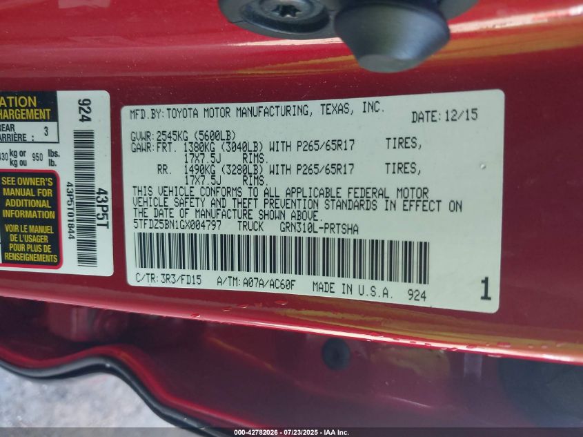 2016 TOYOTA TACOMA 2016 року Бензин, 3.5, Полный привод, vin - 5TFDZ5BN1GX004797 из США