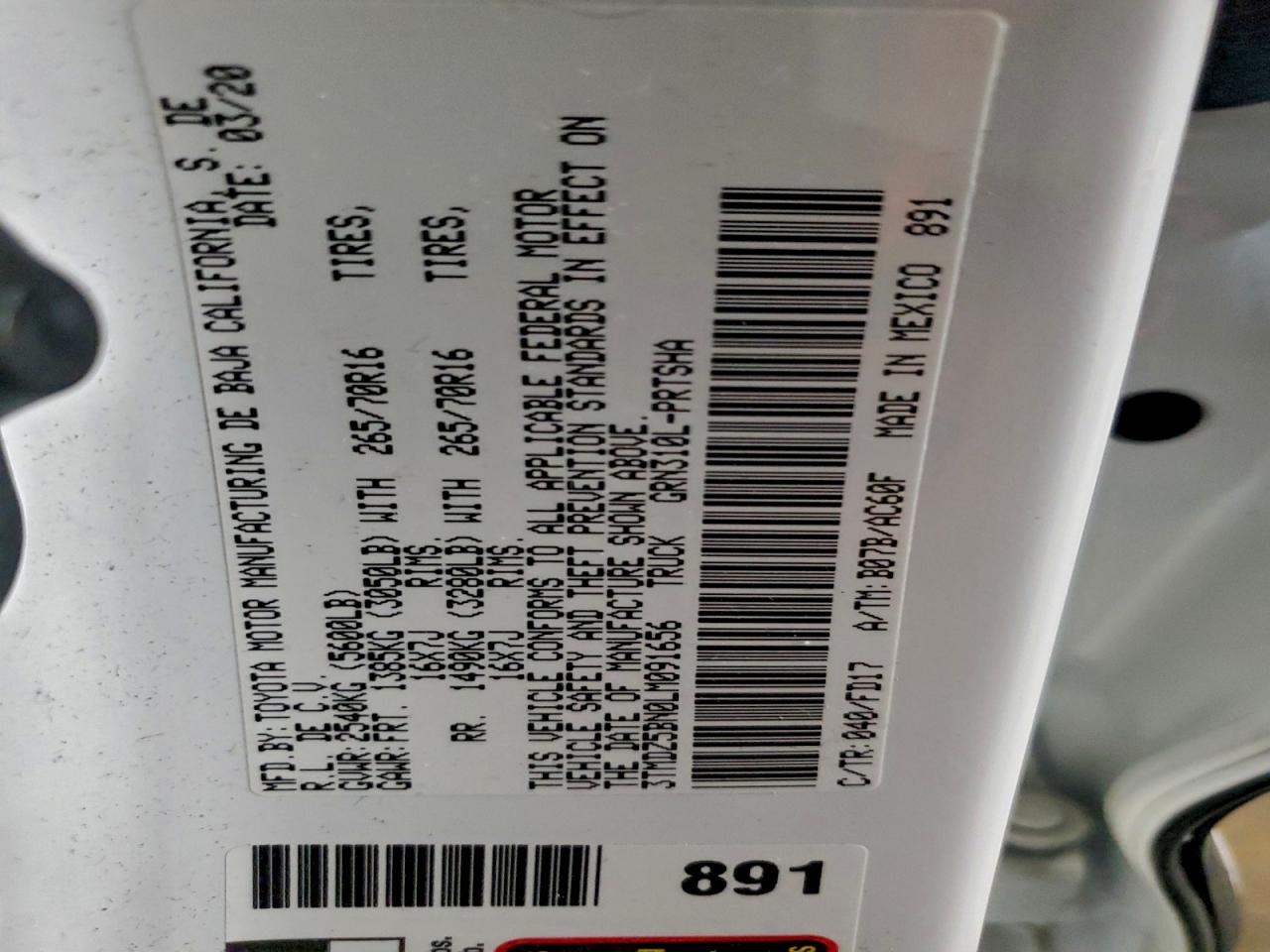 Цвет БелыйЦилиндры 6Привод 4x4 с задним приводомVIN 3TMDZ5BN0LM091656Состояние Заводится и едет (проверено)Повреждения Задняя AutoRIA