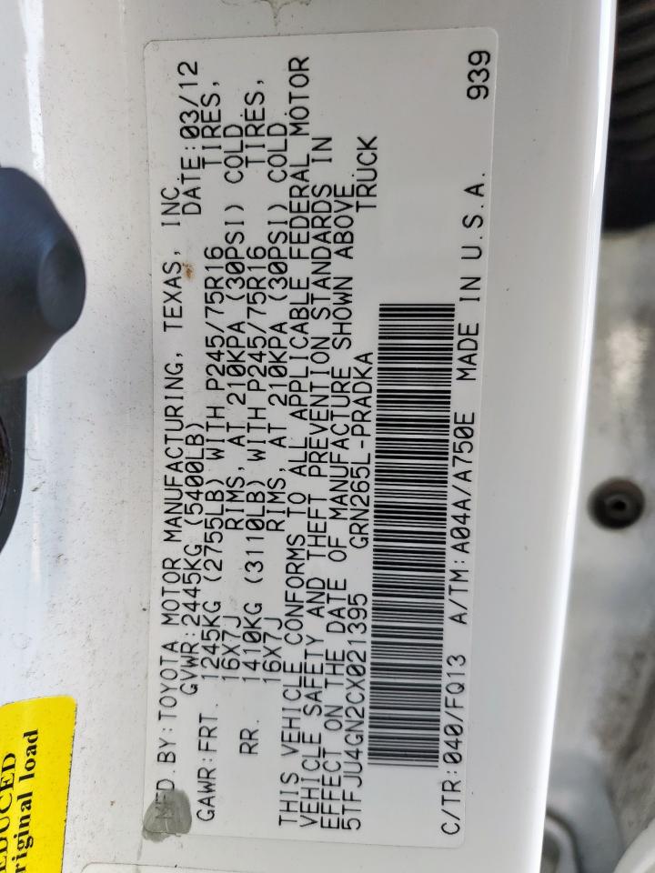 2012 TOYOTA TACOMA 2012 року Бензин, 4.0, Задний привод, vin - 5TFJU4GN2CX021395 из США