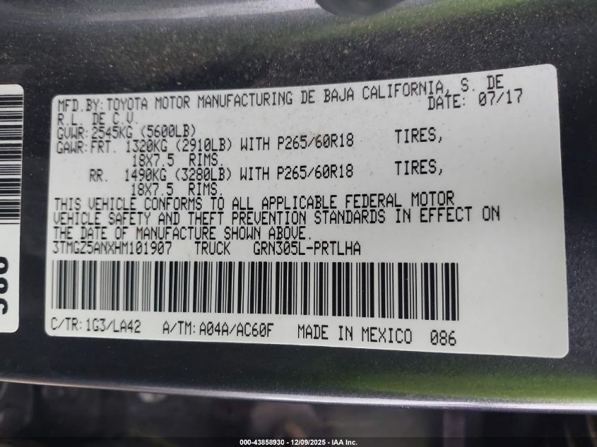 2017 TOYOTA TACOMA 2017 року Бензин, 3.5, Полный привод, vin - 3TMGZ5ANXHM101907 из США