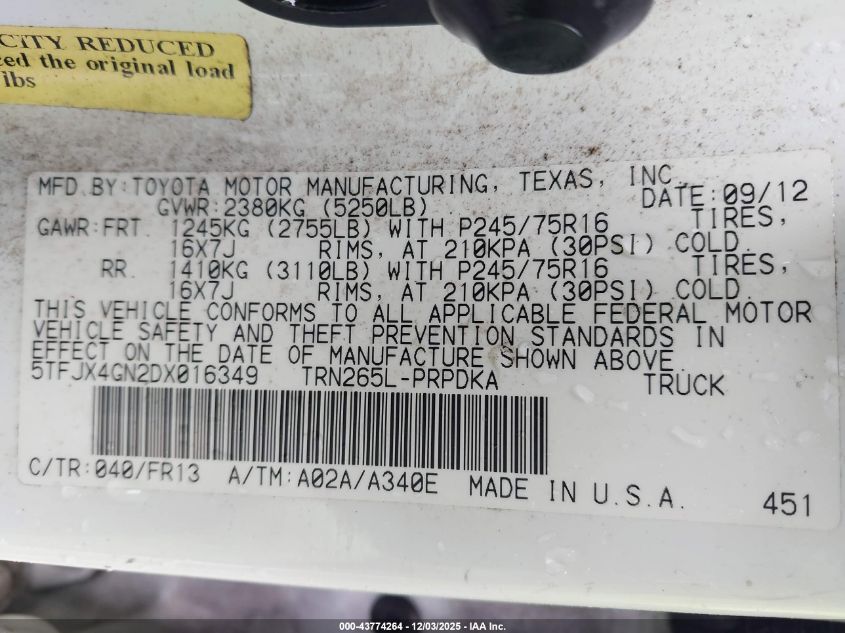 2013 TOYOTA TACOMA