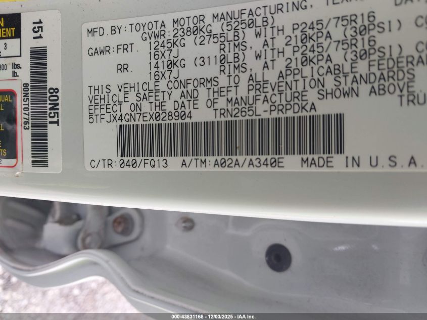 2014 TOYOTA TACOMA 2014 року Бензин, 2.7, , vin - 5TFJX4GN7EX028904 из США