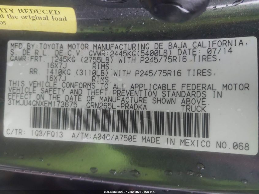 2014 TOYOTA TACOMA 2014 року Бензин, 4.0, , vin - 3TMJU4GNXEM173675 из США