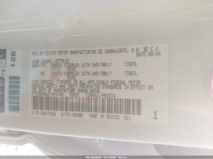 2024 TOYOTA TACOMA 2024 року Бензин, 2.4, , vin - 3TYKD5HN6RT009648 из США