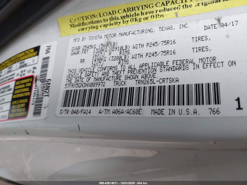 2017 TOYOTA TACOMA 2017 року Бензин, 2.7, , vin - 5TFRX5GN3HX089972 из США