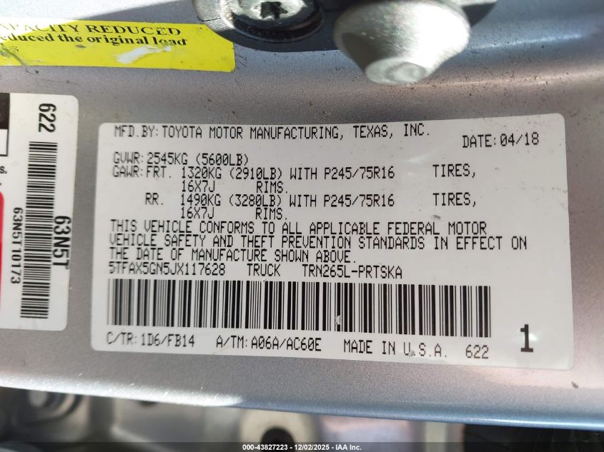 2018 TOYOTA TACOMA 2018 року Бензин, 2.7, , vin - 5TFAX5GN5JX117628 из США