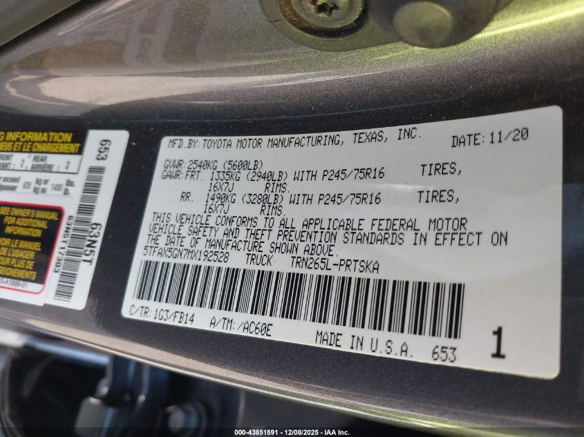 2021 TOYOTA TACOMA 2021 року Бензин, 2.7, , vin - 5TFAX5GN7MX192528 из США