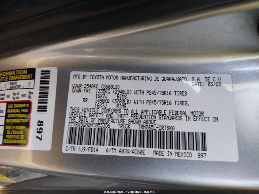 Цвет СеребряныйЦилиндры 4VIN 3TYRX5GN2NT053356Состояние СтационарноПовреждения Био/Химические AutoRIA