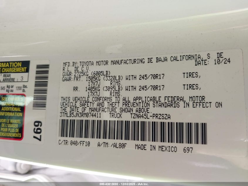 2024 TOYOTA TACOMA 2024 року Бензин, 2.4, Полный привод, vin - 3TMLB5JN3RM074411 из США