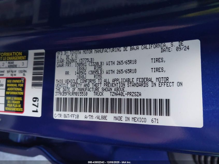2024 TOYOTA TACOMA 2024 року Бензин, 2.4, , vin - 3TMKB5FN1RM015510 из США