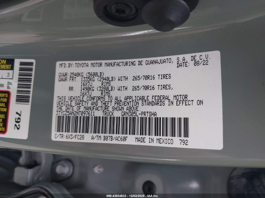 2022 TOYOTA TACOMA 2022 року Бензин, 3.5, Полный привод, vin - 3TYCZ5AN2NT097611 из США